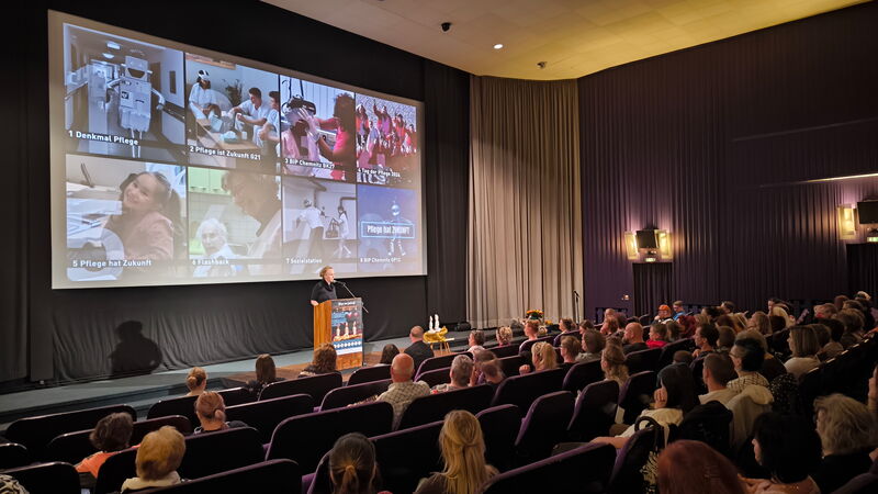 Im Vorfeld der Veranstaltung waren Pflegeeinrichtungen und Fachschulen aufgerufen, selbstgedrehte Kurzfilme einzureichen, die sich mit den zukünftigen Anforderungen und Möglichkeiten des Pflegeberufes auseinandersetzen. Aus den eingereichten Beiträgen, die auf der Kinoleinwand präsentiert wurden, prämierte eine Jury drei Filme und zeichnete diese mit der „Goldenen Agnes“ aus. Den Preis, den die Chemnitzer Wohlfahrtsverbände seit 2022 in Anlehnung an die Pflegereformerin Agnes Karll verleihen, konnten das „Thomas- Morus- Haus“ der Caritas, die Ambulante Pflege des DRK Chemnitz und das Pflegeheim „Am Goetheplatz“ des ASB entgegennehmen. Zusätzlich vergab das Publikum per Live- Voting einen Preis, den das „Bethanien Bildungszentrum für Gesundheitsfachberufe“ in Chemnitz gewann. Die Auszubildenden können sich nun auf einen Kinoabend im Metropol freuen.
