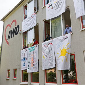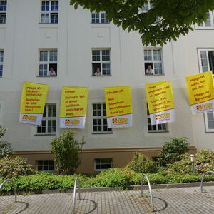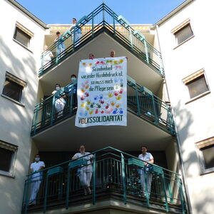 Am 12. Mai werden unsere Mitarbeiter*innen diese Stoffbanner mittags um 5 vor 12 aus den Fenstern unserer Einrichtungen hängen. Unser Statement dazu: „Klatschen allein reicht uns nicht. Pflege braucht Rückhalt, Wertschätzung und Zeit - nicht nur in Krisen- und Ausnahmesituationen.“ Rund um den Tag der Pflegenden hatte die Liga der Spitzenverbände der freien Wohlfahrtspflege in diesem Jahr ursprünglich mehrere Aktionstage unter dem Motto „Setz dich ein für die Pflege“ geplant. Mit der im März einsetzenden Dynamik rund um das neuartige Corona-Virus war jedoch schnell klar, dass wir die diesjährige Aktion nicht wie geplant umsetzen können.