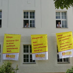 Am 12. Mai werden unsere Mitarbeiter*innen diese Stoffbanner mittags um 5 vor 12 aus den Fenstern unserer Einrichtungen hängen. Unser Statement dazu: „Klatschen allein reicht uns nicht. Pflege braucht Rückhalt, Wertschätzung und Zeit - nicht nur in Krisen- und Ausnahmesituationen.“ Rund um den Tag der Pflegenden hatte die Liga der Spitzenverbände der freien Wohlfahrtspflege in diesem Jahr ursprünglich mehrere Aktionstage unter dem Motto „Setz dich ein für die Pflege“ geplant. Mit der im März einsetzenden Dynamik rund um das neuartige Corona-Virus war jedoch schnell klar, dass wir die diesjährige Aktion nicht wie geplant umsetzen können.